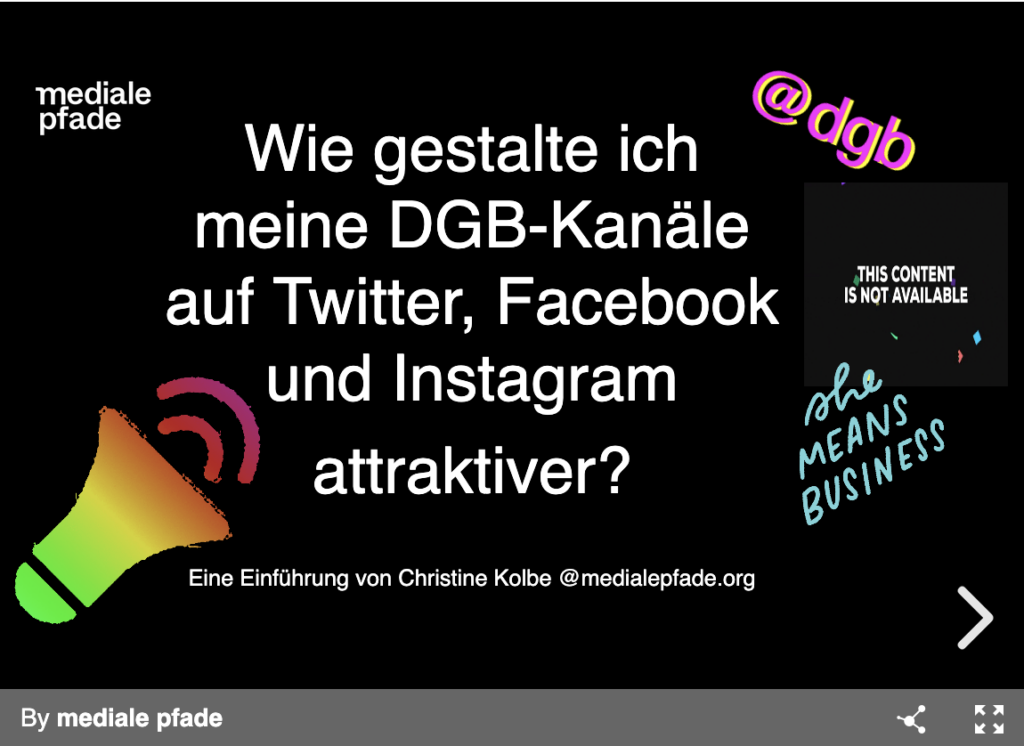 In diesem Seminar erfahren DGB-Beschäftigte, die eine oder mehrere Social-Media-Seiten betreuen, welche Standards für die Arbeit in und mit den sozialen Netzwerken wichtig und sinnvoll sind. Da die meisten DGB-Gliederungen inzwischen eine eigene Facebook-Seite, einen Instagram-Account und/oder einen Twitter-Account haben, können Verantwortliche dieser Kanäle im Umgang mit den sozialen Netzwerken gestärkt und sicherer werden.